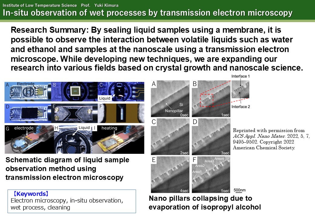 Researcher Archive Yuki Kimura Institute of Low Temperature Science Professor Research Layer Process Keyword Electron microscopy in-situ observation wet process cleaning Back to the Researcher List