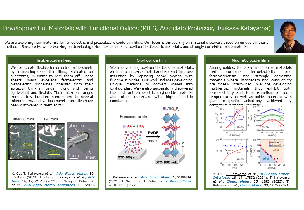 Researcher Archive Tsukasa Katayama Research Institute for Electronic Science Associate Professor Research Layer Materials Creation Process Device Keyword Thin film crystal growth Ferroelectric thin film Piezoelectric thin film Dielectric thin film Peeling technology Back to the Researcher List