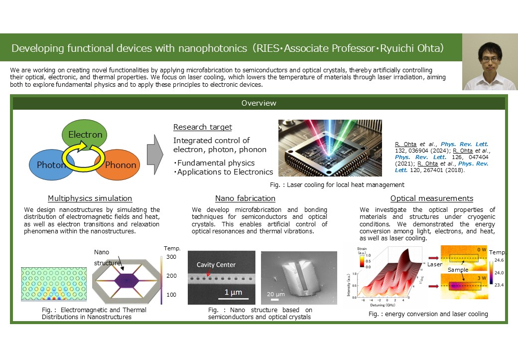 Researcher Archive Ryuichi Ohta Research Institute for Electronic Science Associate Professor Research Layer Process Device Keyword Semiconductor nanofabrication Cryogenic microspectroscopy Nanophotonics Laser cooling Back to the Researcher List