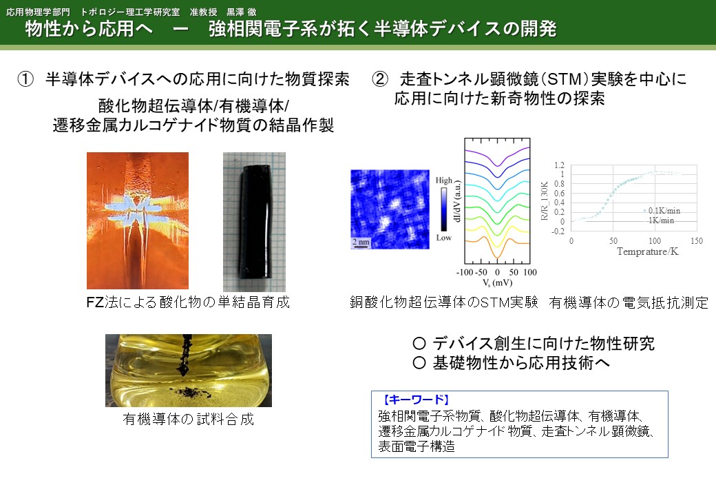 RESEARCHER 研究者一覧 黒澤 徹 Tohru Kurosawa 大学院工学研究院 准教授 研究レイヤ 材料創製 研究キーワード 強相関電子系物質 酸化物超伝導体 有機導体 遷移金属カルコゲナイド物質 走査トンネル顕微鏡 表面電子構造 研究者一覧へ戻る